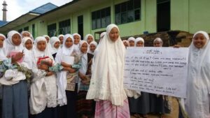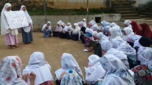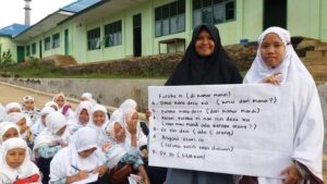 Dengan hanya berbekal sebuah papan tulis sederhana buatan sendiri, para santri mengikuti kegiatan Vocabularies Enrichment mingguan dengan penuh semangat. Semoga cita-cita Ponpes Assalam untuk mencetak kader unggulan senantiasa dimudahkan, diberkahi dan diridhoi Allah Swt. Aamiin.