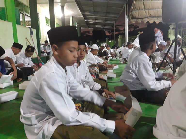 Ada hidangan takjil berupa air dan kue atau jajanan pasar dan kurma saat masuk waktu berbuka. Selesai sholat para santri dan warga pesantren kembali berdoa bersama-sama untuk menikmati hidangan berbuka, nasi kotak sumbangan dari para donatur.