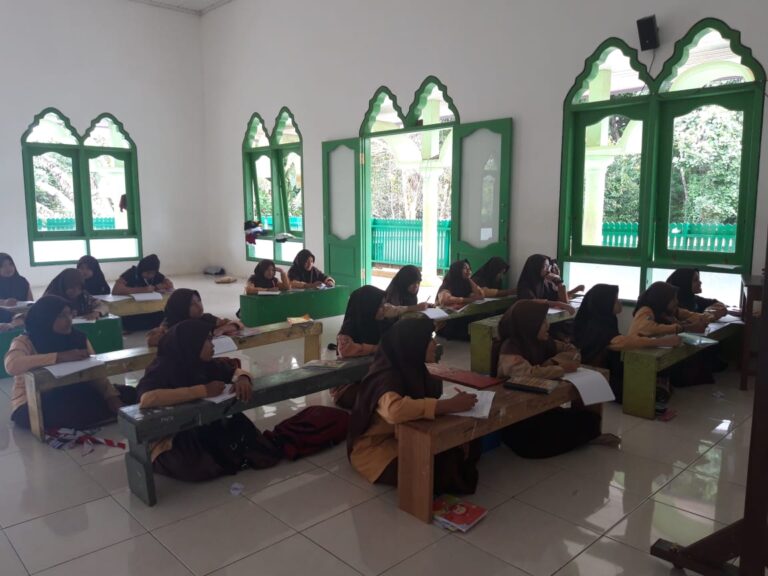 Dan berikut disampaikan kondisi belajar santri yang menempati ruangan teras Masjid (MA Subulussalam Kelas X) dan menempati Musholla (MTs Klas VIII Putri).