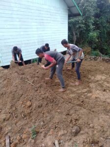 Alhamdulillah etos kerja kemandirian santri bidang perkebunan terus berkarya, setelah panen jagung, kangkung dan kacang panjang, para santri mengolah lahan dan mencangkul untuk dibuat bedengan