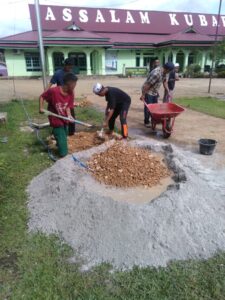 Alhamdulillah, disela-sela libur kegiatan belajar formal Madrasah Tsnawiyah, para santri royong membuat semenisasi jalan masuk kelas. Ada empat jalan masuk yang dibuatkan cor coran sederhana,