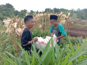 Alhamdulillah etos kemandirian santri lanjut pengumpulan biji jagung dari hasil panen sebelumnya, dikerjakan secara manual bersama-sama para santri. Biji jagung yang terkumpul sebagian dibuat bibit