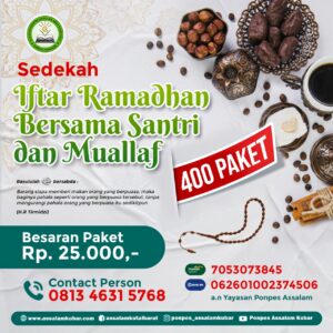 Alhamdulillah di bulan yang penuh berkah ini, marilah kita bersama-sama saling berbagi kebahagiaan dan kecerian bersama ratusan santri dan muallaf di PP Assalam, melalui program