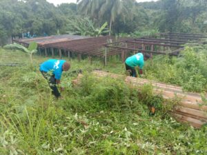 Jum’at 18 desember 2020, seluruh warga dan para santri bergotong royong menebas dan membersihkan rumput di sekitar komplek Pesantren.