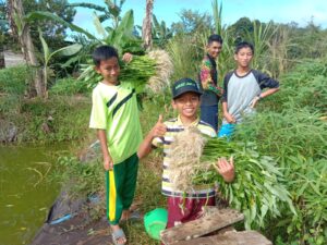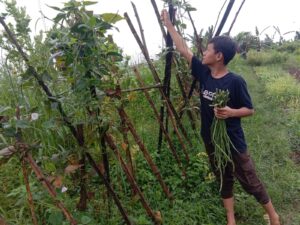 Alhamdulillah etos kerja kemandirian santri berkebun kembali panen, kali ini para santri memetik sayur kangkung dari kebun untuk disetor dan