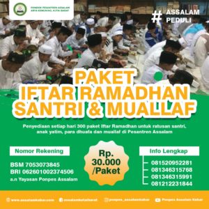 Assalamualaikum wr, wb, Bapak/Ibu para muhsinin yang dimulyakan Allah, Alhamdulillah di Bulan Ramadhan yang penuh berkah ini, ratusan santri dan anak yatim, para dhuafa dan