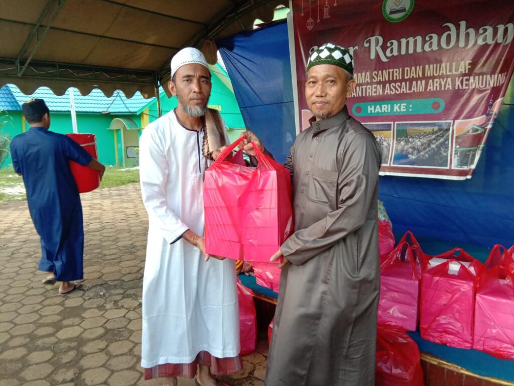 Alhamdulillah suasana santap menu berbuka bersama santri dan muallaf di PP Assalam berjalan lancar penuh berkah, Selama satu bulan penuh Ramadhan kegiatan Iftar dibantu oleh para donatur.