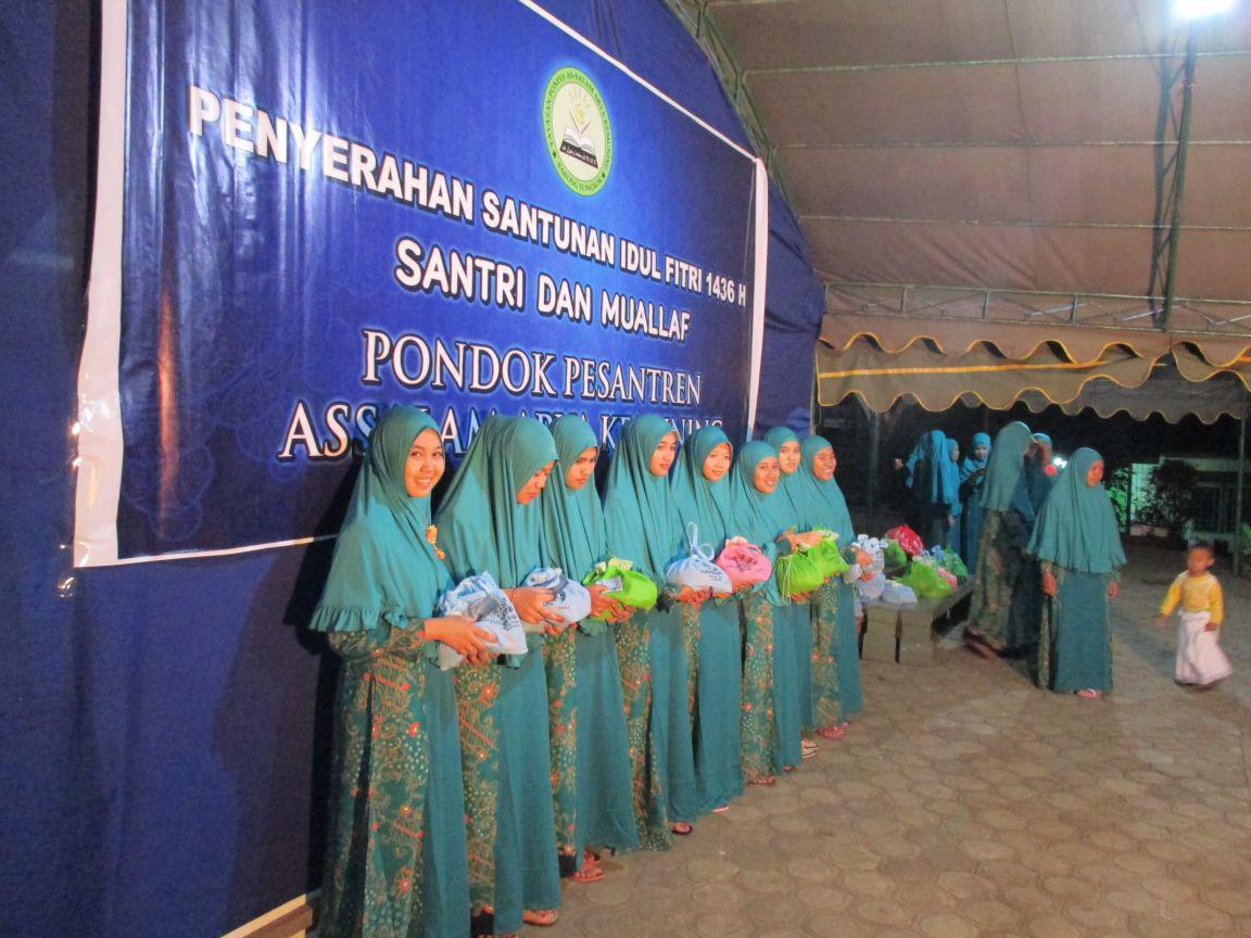 Dimulai dengan pengeluaran zakat fitrah bersama, yang kemudian berlanjut pada acara bagi bingkisan lebaran untuk santri putra-putri dan warga pondok. Pemberian santunan diberikan langsung oleh pimpinan dan pengasuh PONDOK PESANTREN ASSALAM, KH. ARIEF HERI SETIYAWAN. (kegiatan dapat dilihat sebagaimana dalam foto) Pembagian Santunan Dan Bingkisan Lebaran Dibagi Menjadi Dua Tahap, Pertama Untuk Seluruh Warga PONDOK PESANTREN ASSALAM, yang dilakukan pada malam ‘id. kedua, ba’da subuh, hingga menjelang solat ‘id pemberian santunan dan bingkisan lebaran kepada para jama’ah muallaf yang hadir di PONDOK PESANTREN ASSALAM.