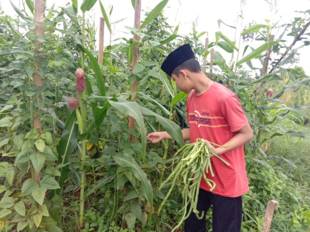 Alhamdulillah Selasa 08 desember 2020, kembali santri-santri memanen kacang panjang, jagung dan pepaya hasil kebun santri Assalam.
