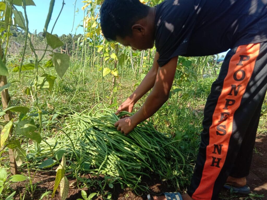 Alhamdulillah hasil kebun santri berkah, kembali panen sayur kacang panjang. berikutnya masih perawatan tanamman yang lain.