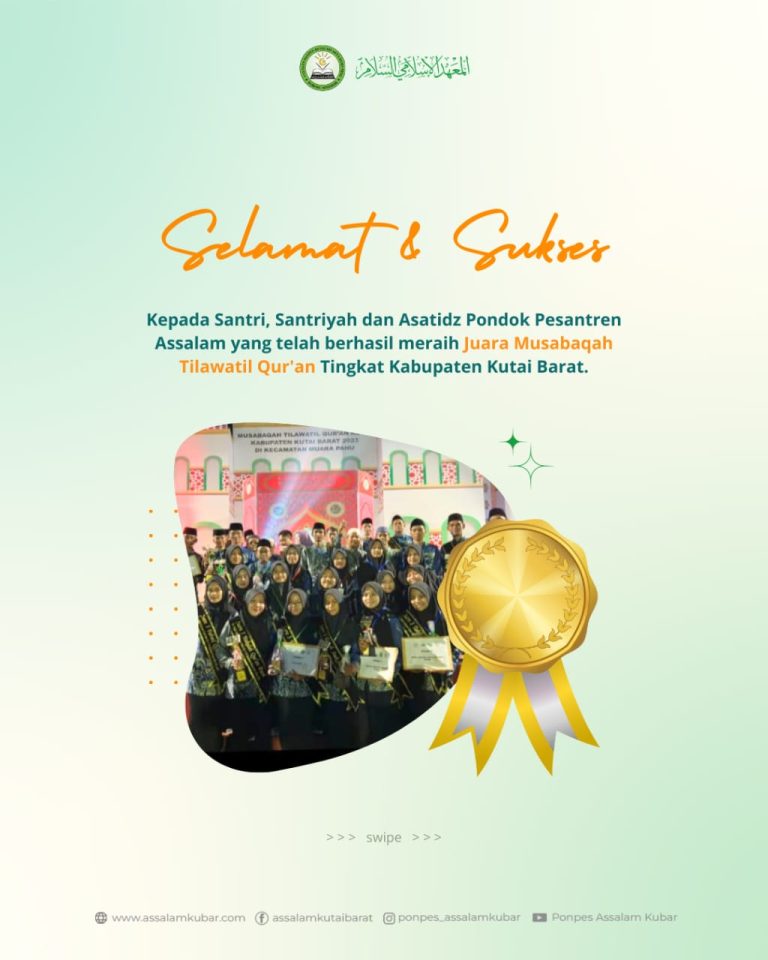 Selamat kepada para santri, santriyah dan asatidz Pondok Pesantren Assalam yang telah meraih prestasi gemilang pada kegiatan MTQ ke-XV tingkat kabupaten di kecamatan Muara Pahu! Kalian telah membuktikan dedikasi dan kerja keras kalian dalam memahami dan menghafal Al-Quran. Prestasi ini adalah bukti nyata ketulusan kalian dalam beribadah dan memperdalam ilmu agama.