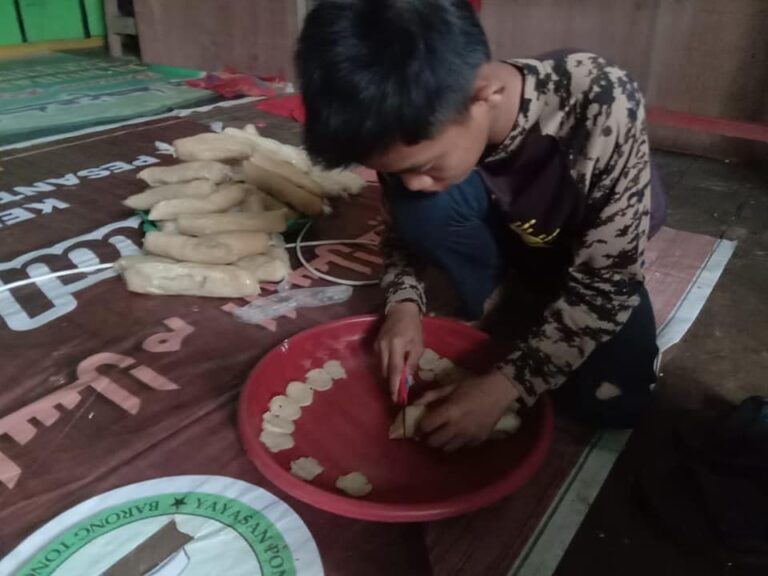 Selasa 15 desember 2020, tim tata boga santri Assalam membuat olahan kerupuk singkong dari hasil panen singkong dikebun, yang nantinya akan dijual kepada santri-santri.