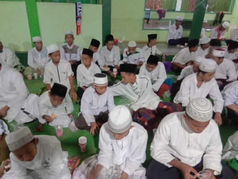 Alhamdulillah suasana kegiatan rutin iftar bersama santri dan muallaf tahun ini dilakukan di halaman masjid, secara bersama-sama santri berdizkir dan doa sebelum maghrib.