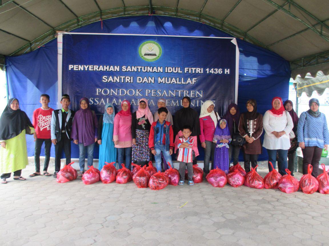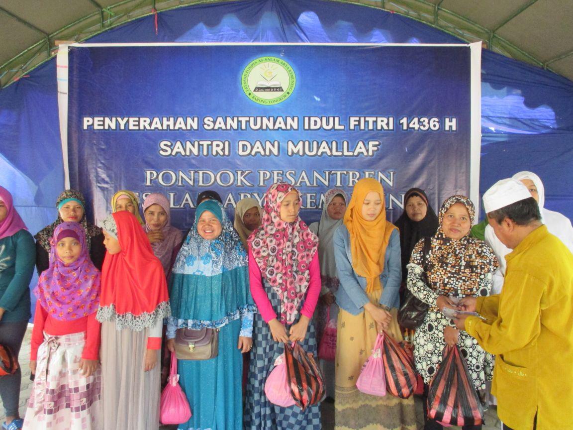 Dimulai dengan pengeluaran zakat fitrah bersama, yang kemudian berlanjut pada acara bagi bingkisan lebaran untuk santri putra-putri dan warga pondok. Pemberian santunan diberikan langsung oleh pimpinan dan pengasuh PONDOK PESANTREN ASSALAM, KH. ARIEF HERI SETIYAWAN. (kegiatan dapat dilihat sebagaimana dalam foto) Pembagian Santunan Dan Bingkisan Lebaran Dibagi Menjadi Dua Tahap, Pertama Untuk Seluruh Warga PONDOK PESANTREN ASSALAM, yang dilakukan pada malam ‘id. kedua, ba’da subuh, hingga menjelang solat ‘id pemberian santunan dan bingkisan lebaran kepada para jama’ah muallaf yang hadir di PONDOK PESANTREN ASSALAM.