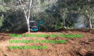 Laporan perdana Gedung Madrasah saat ini adalah pada tahap pemerataan dan penggalian tanah dan kebutuhan awal yang perlu diwujudkan adalah : PENGADAAN KAYU ULIN 16 KUBIK UNTUK PEMANCANGAN SEBELUM PONDASI.