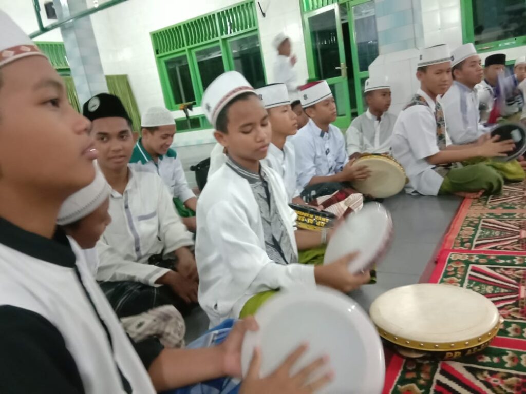 Kegiatan rutin malam selasa, para santri bersholawat bersama di mesjid membaca diba dan simtut duror sekaligus latihan hadrah.