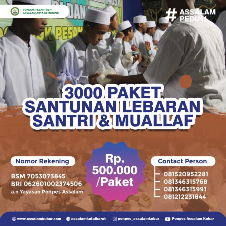 Pada kesempatan bulan Ramadhan yang penuh berkah ini, Pondok Pesantren Assalam memberikan kesempatan kehadapan Bapak/Ibu untuk ikut ambil bagian menjadi