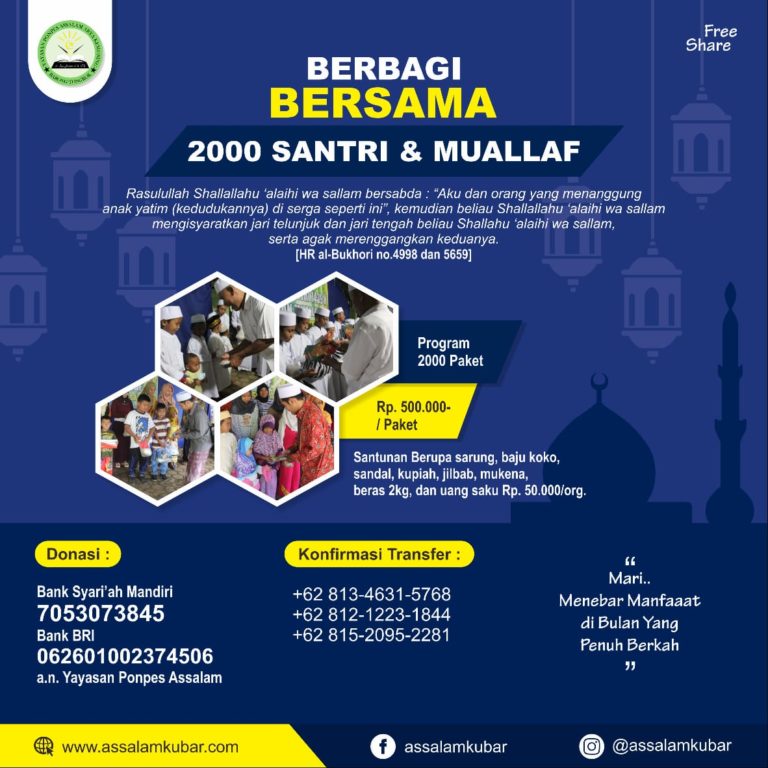 Pondok Pesantren Assalm- Assalamu’ alaikum Wr, Wb, Bapak/Ibu para muhsinin dimanapun berada alhamdulillah pada kesempatan yang berbahagia ini, di
